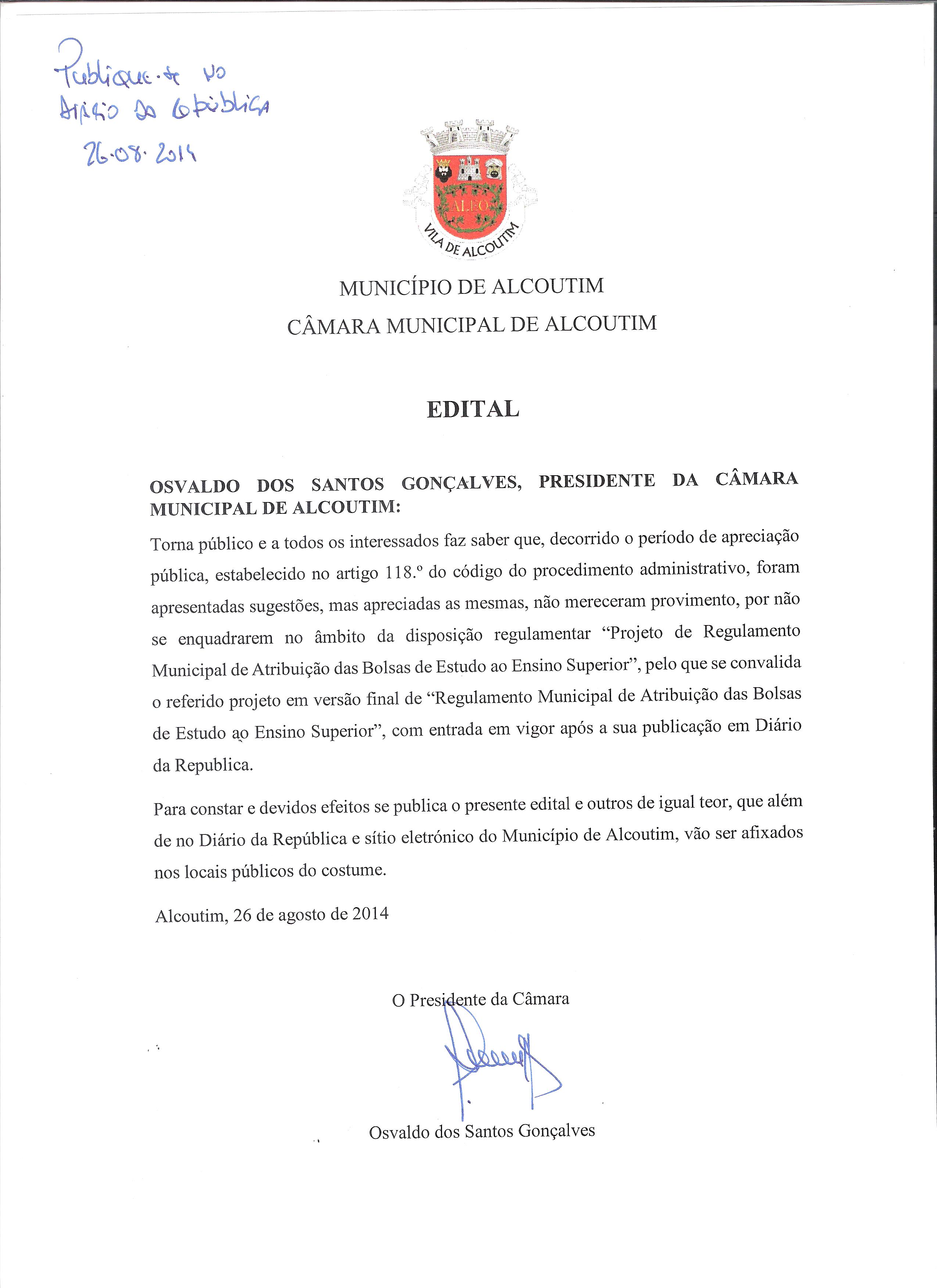 DownloadEdital - Apreciação pública do projeto de Regulamento Municipal de Atribuição das Bolsas de Estudo ao Ensino Superior