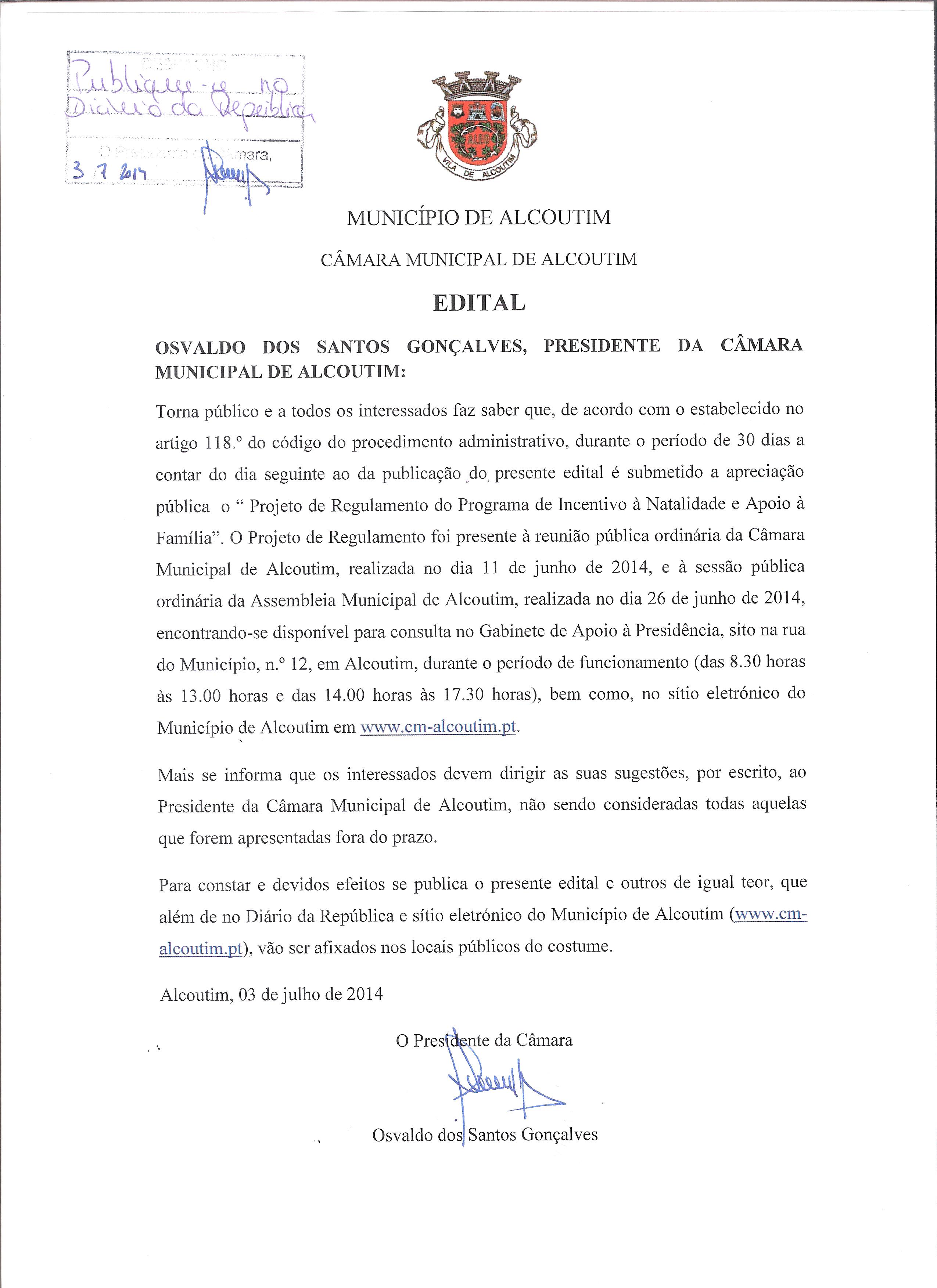 DownloadEdital - Apreciação pública do projeto de Regulamento do Programa de Incentivo à Natalidade e Apoio à Família